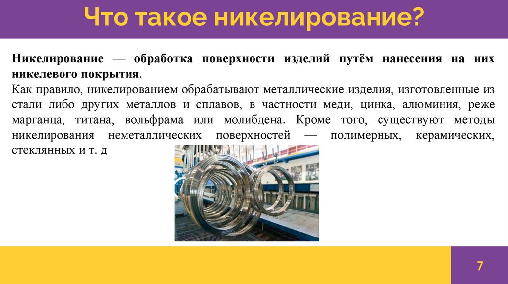 Что такое никелирование?Никелирование — обработка поверхности изделий путём нанесения на них