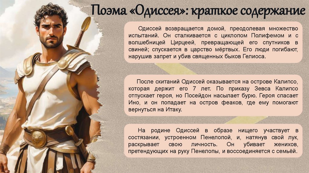 Поэма «Одиссея»: краткое содержаниеОдиссей возвращается домой, преодолевая множество