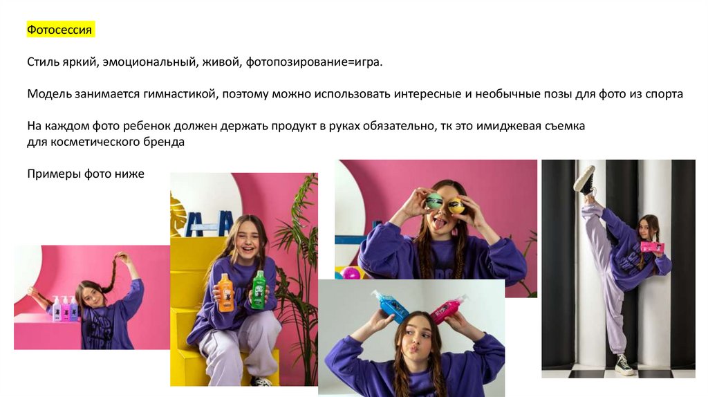 На каждом фото ребенок должен держать продукт в руках обязательно, тк это имиджевая съемка