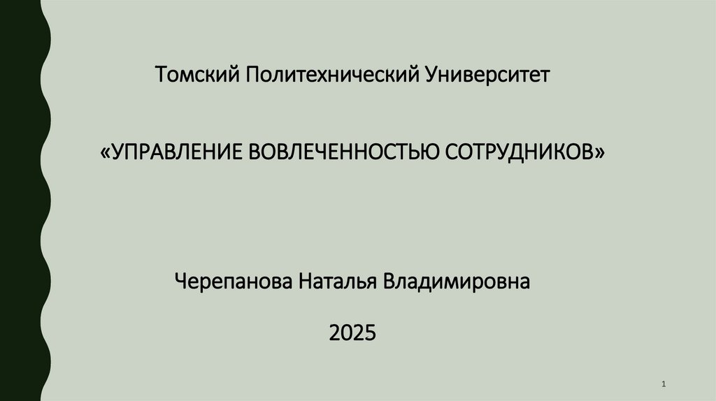 1. Томский Политехнический Университет «Управление вовлеченностью сотрудников» Черепанова Наталья Владимировна 2025