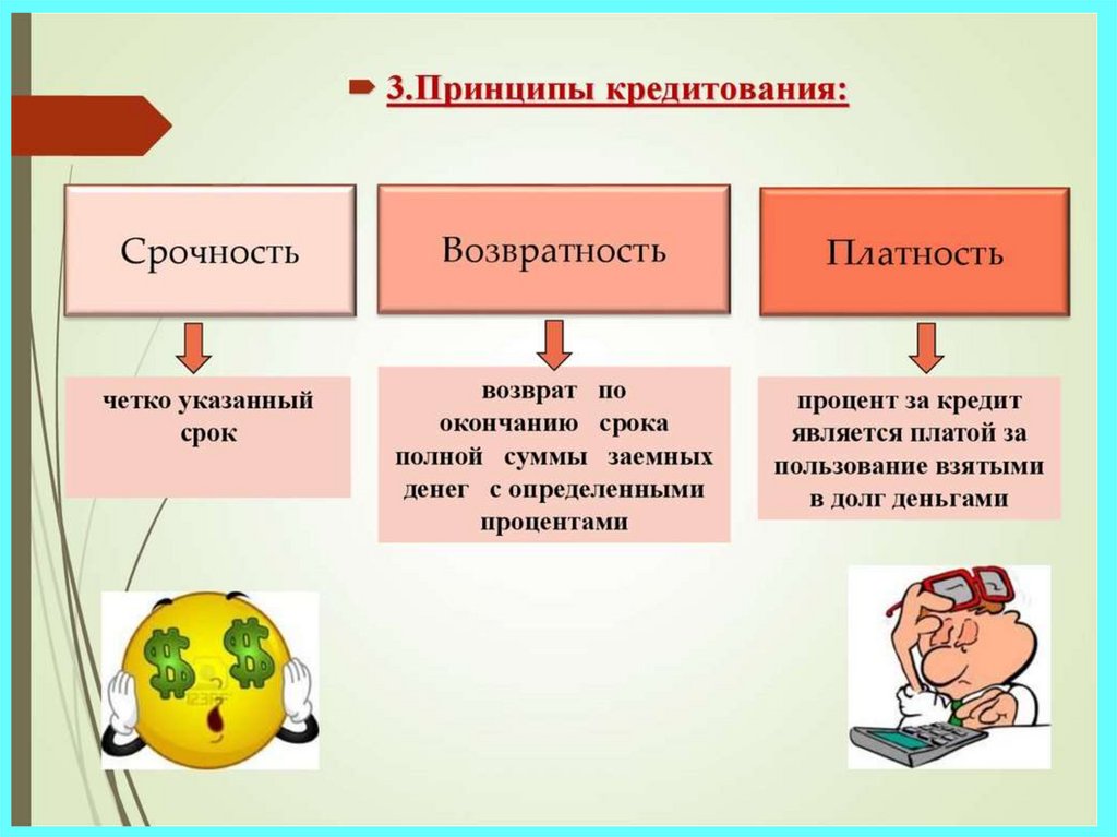 КРЕДИТ – это операция банка по предоставлению заемщикусредств на условиях ПЛАТНОСТИ, ВОЗВРАТНОСТИ,