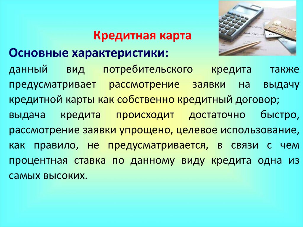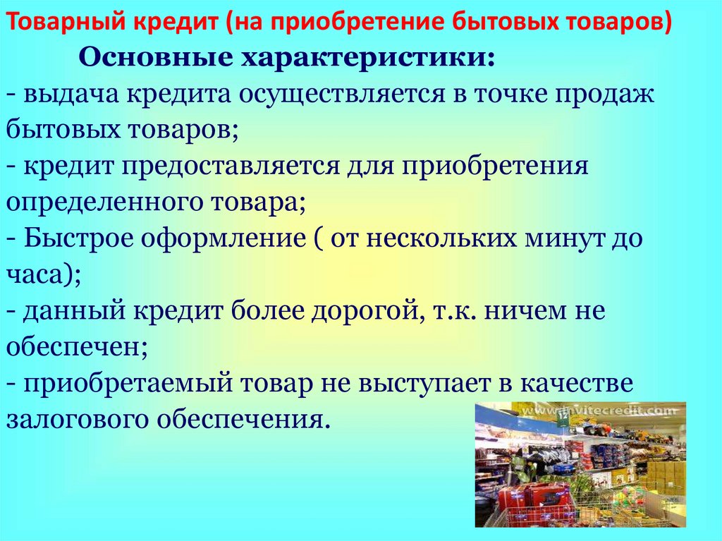 Товарный кредит (на приобретение бытовых товаров)Основные характеристики: