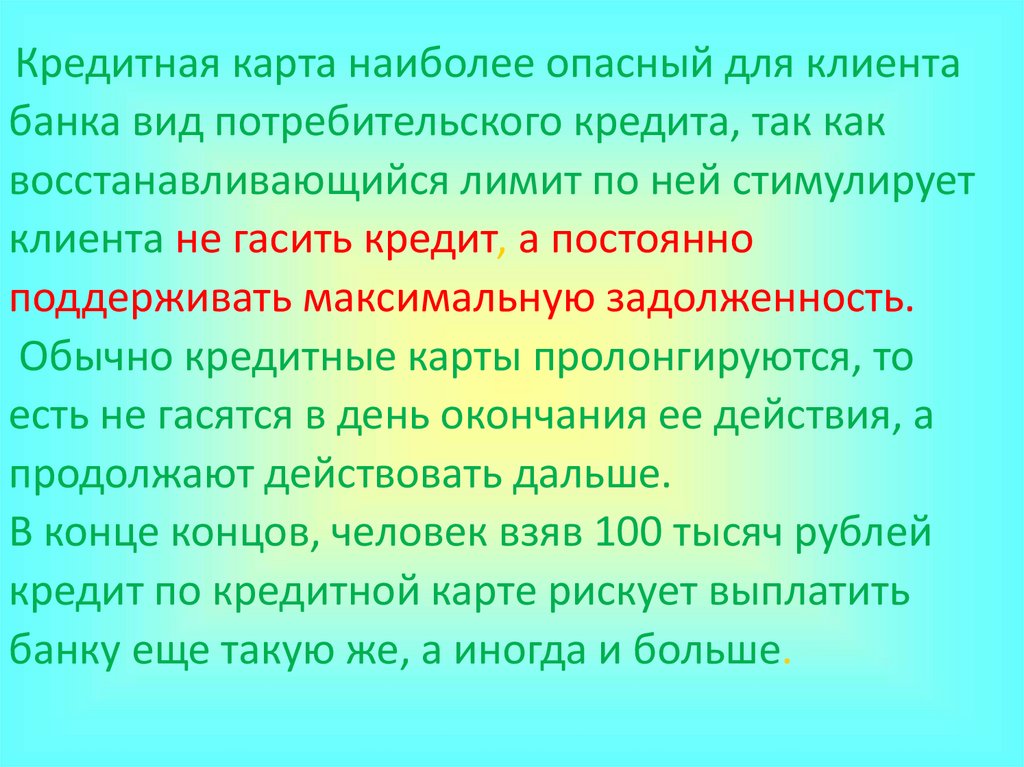 -- Трудности с погашением . Очень часто банки, которые предлагают
