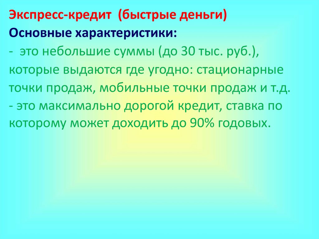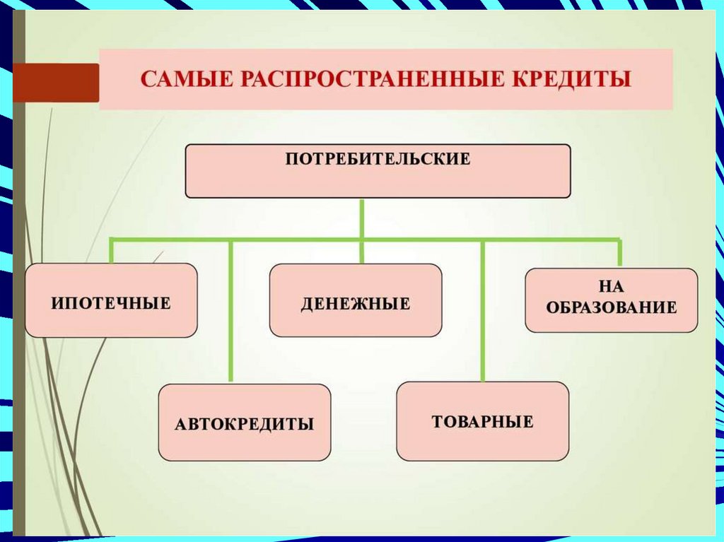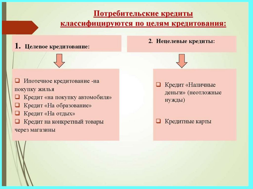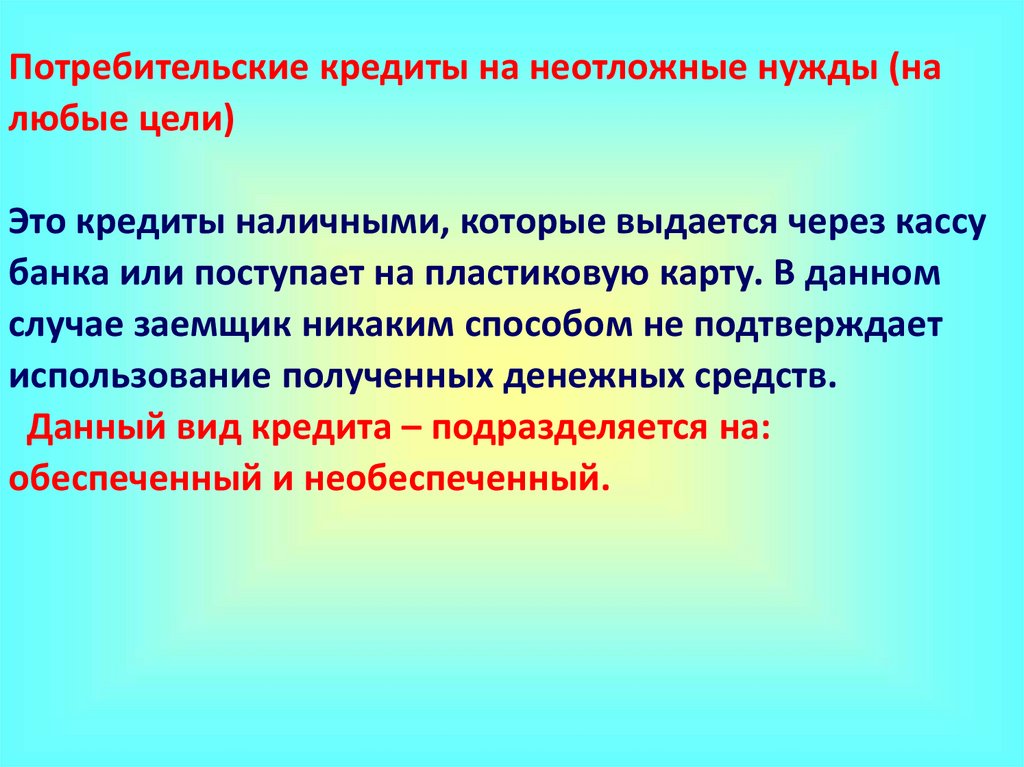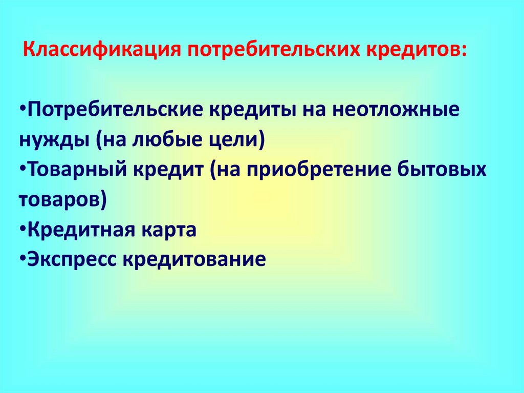 Классификация потребительских кредитов:•Потребительские кредиты на неотложные
