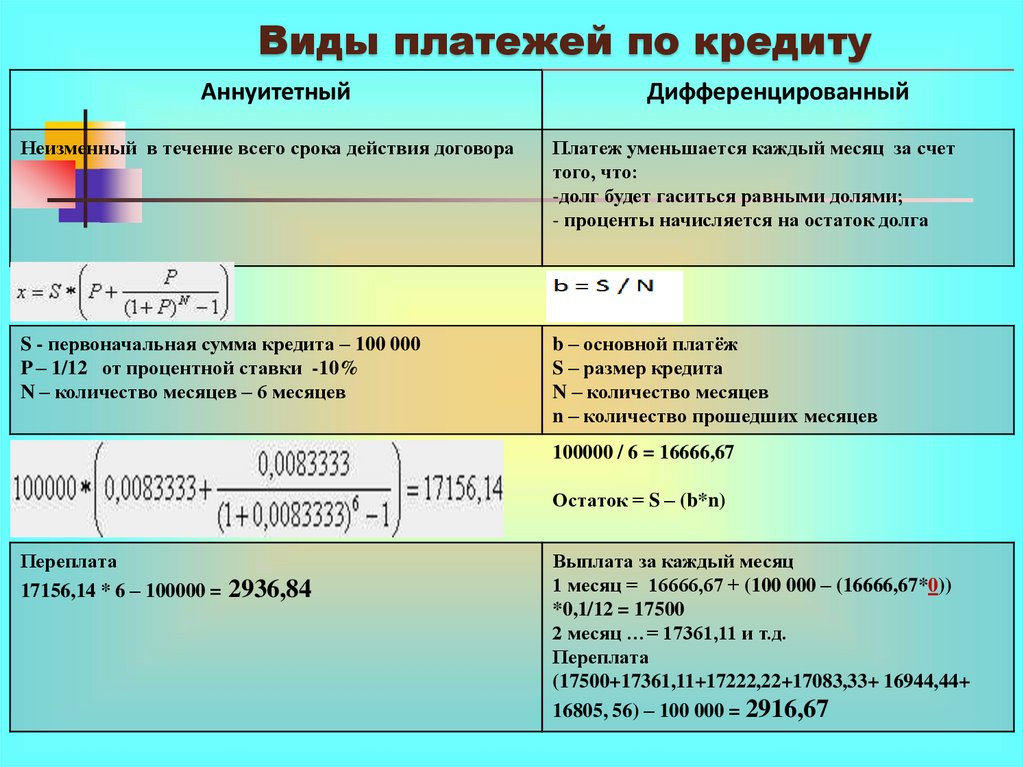 1 месяц = 16666,67 + (100 000 – (16666,67*0))
