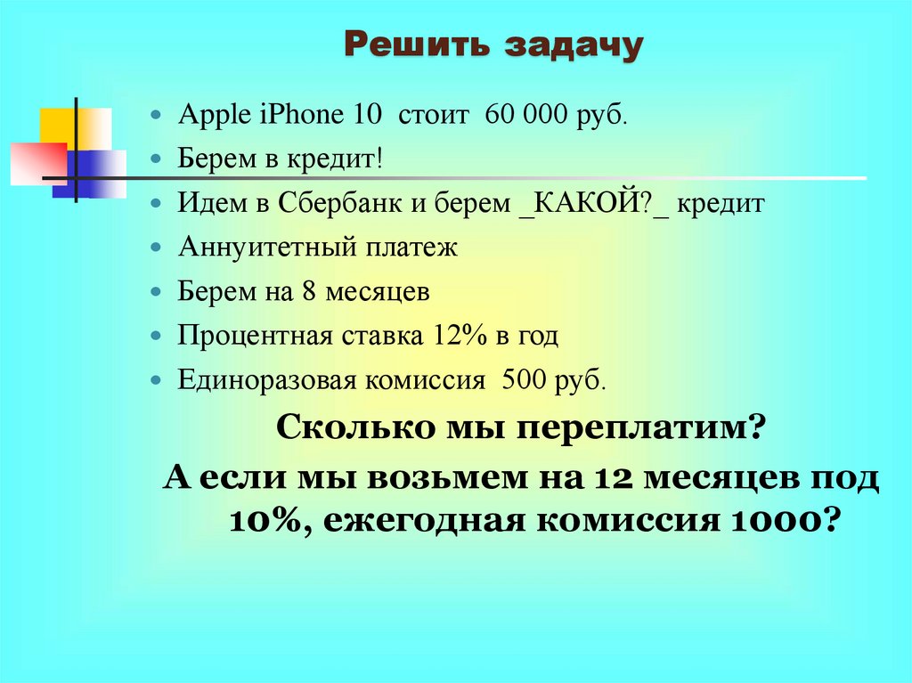 Решить задачуApple iPhone 10 стоит 60 000 руб.