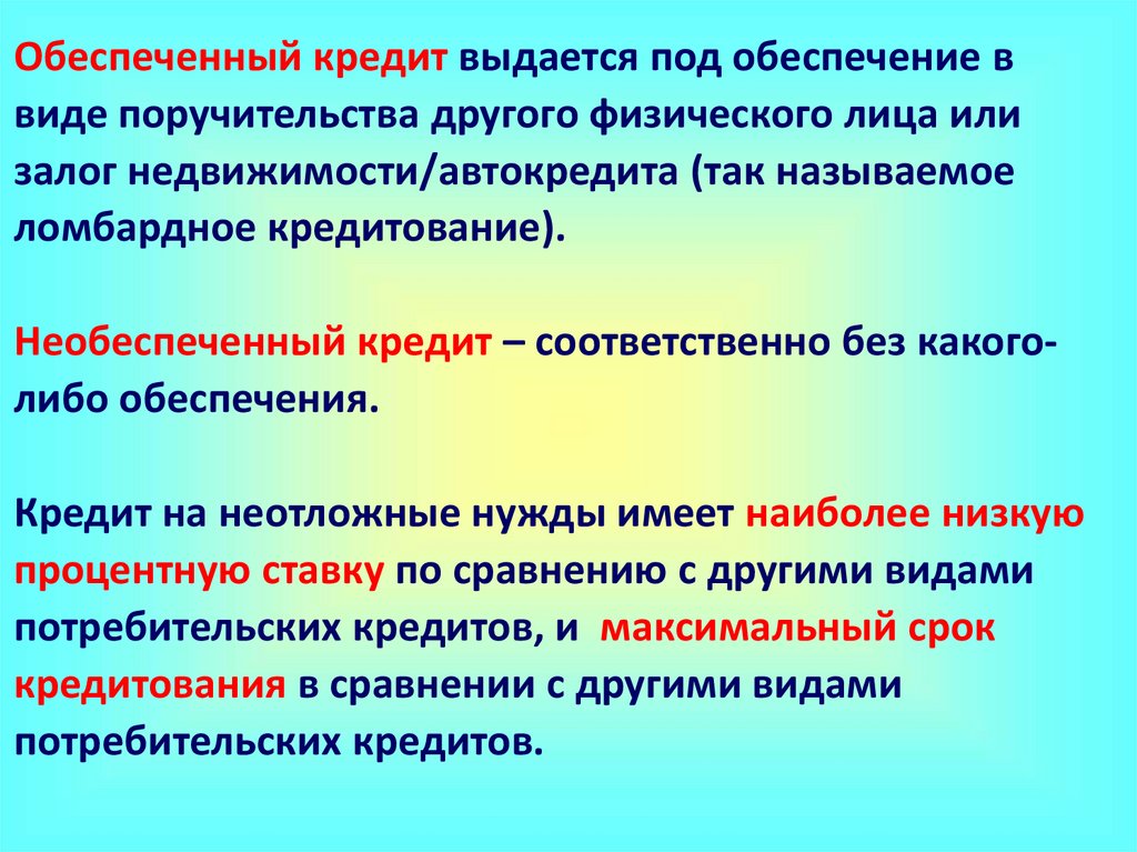 Необеспеченный кредит – соответственно без какоголибо обеспечения.