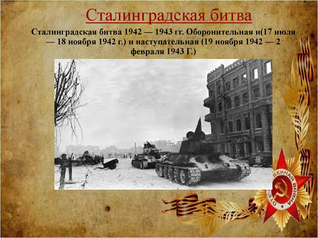 Сталинградская битваСталинградская битва 1942 — 1943 гг. Оборонительная и(17 июля