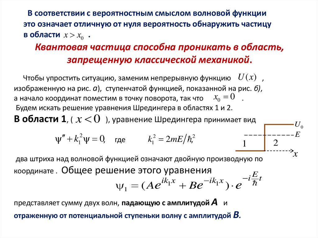 Не приводя математического решения задачи, рассмотрим вид волновыхфункций из общих соображений. Пусть частица обладает полной энергией En .