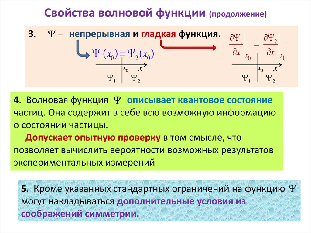 Свойства волновой функции (продолжение)3.