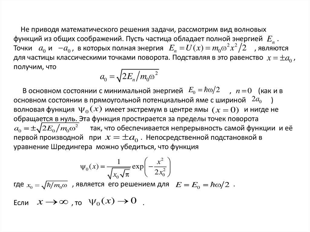 для частицы классическими точками поворота. Подставляя в это равенство x a0 ,