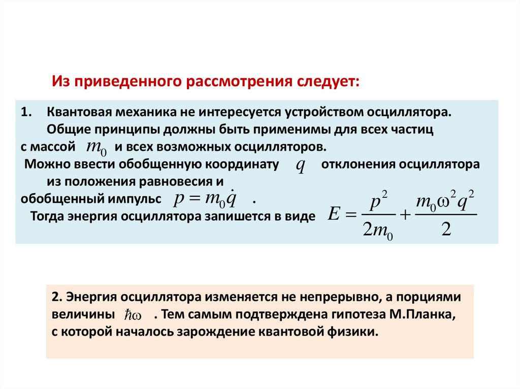 2. Энергия осциллятора изменяется не непрерывно, а порциями