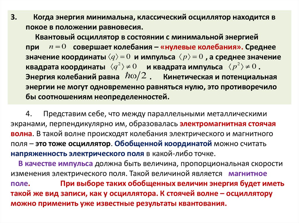 3.Когда энергия минимальна, классический осциллятор находится в