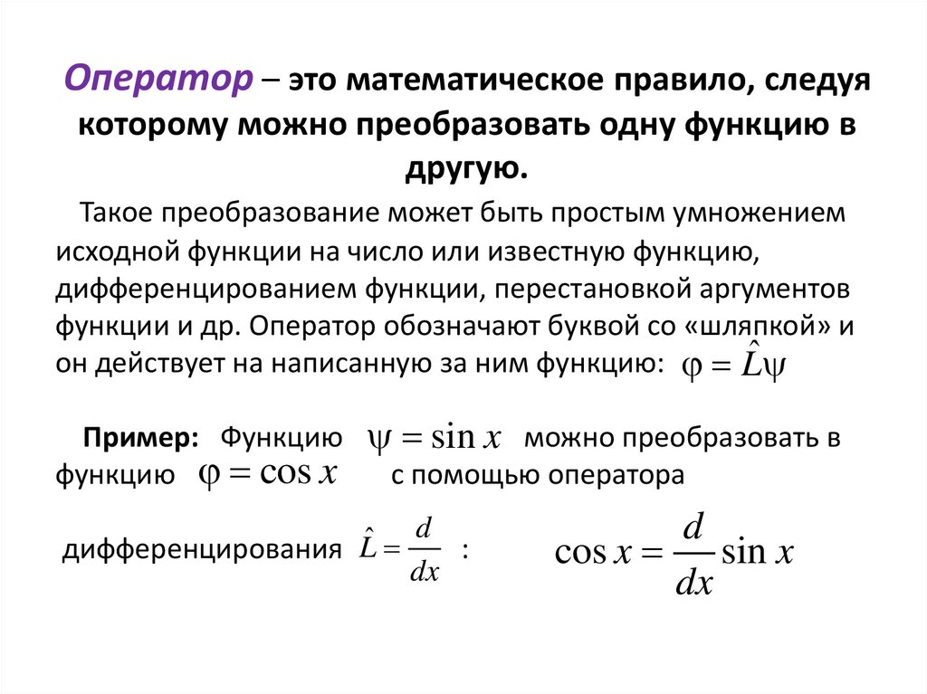 Оператор – это математическое правило, следуякоторому можно преобразовать одну функцию в