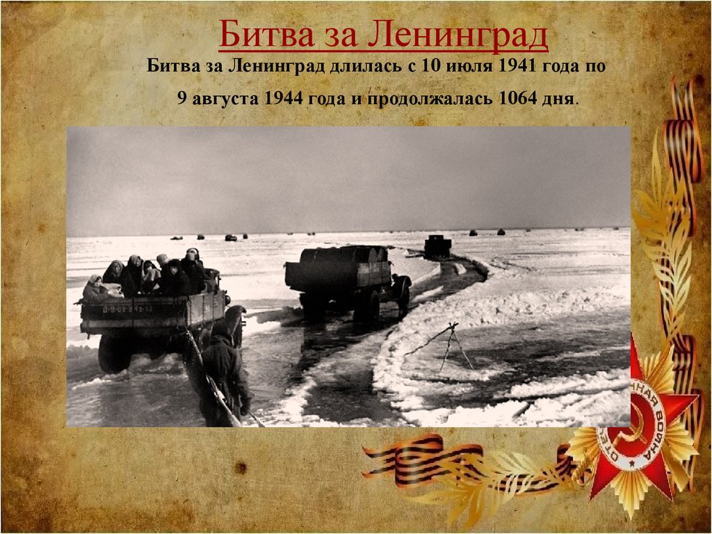 Битва за ЛенинградБитва за Ленинград длилась с 10 июля 1941 года по