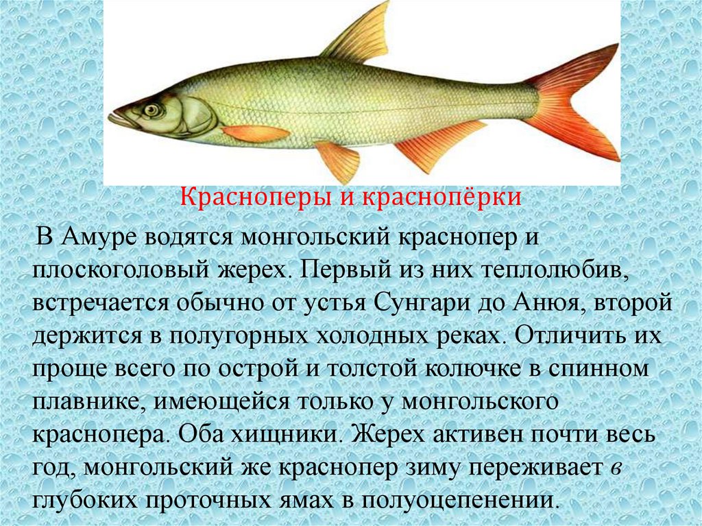 Красноперы и краснопёркиВ Амуре водятся монгольский краснопер и