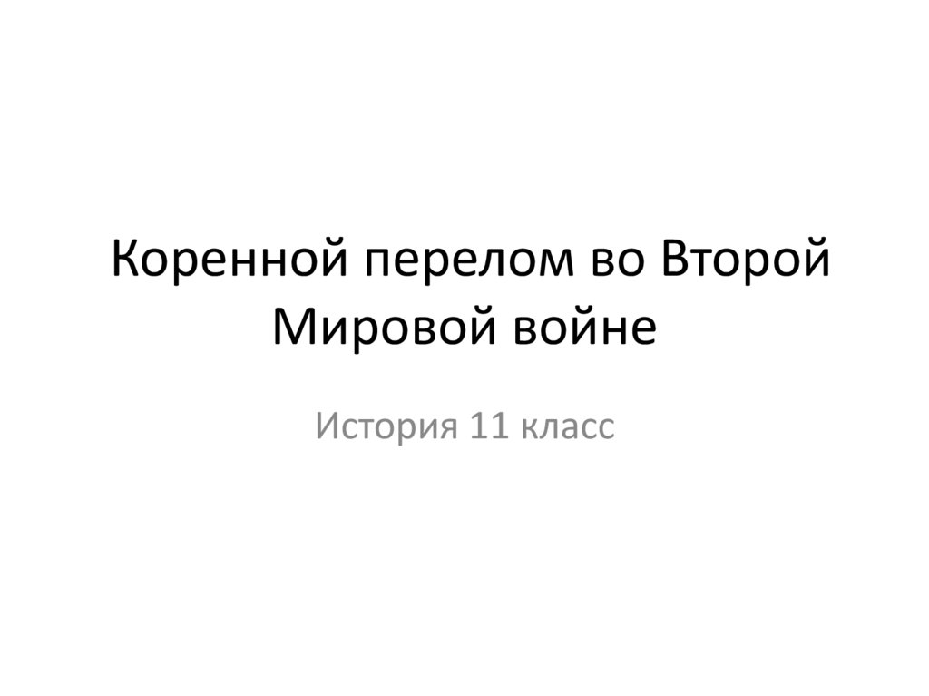 1. Коренной перелом во Второй Мировой войне