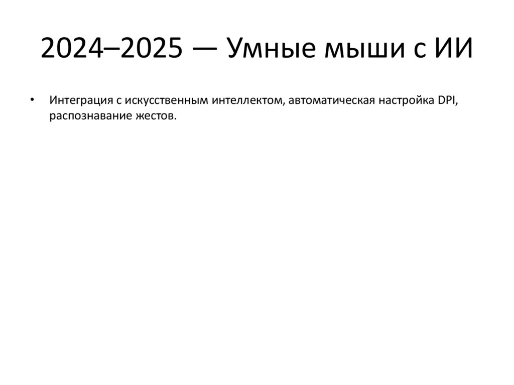 2024–2025 — Умные мыши с ИИИнтеграция с искусственным интеллектом, автоматическая настройка DPI,