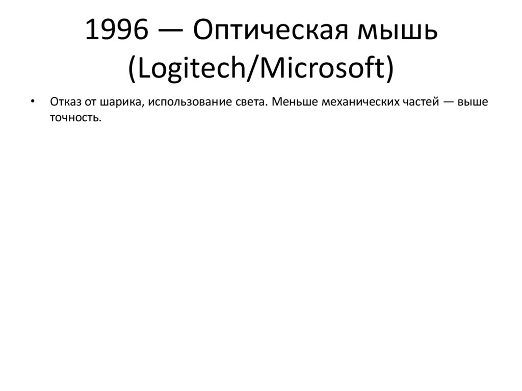 1996 — Оптическая мышь(Logitech/Microsoft)