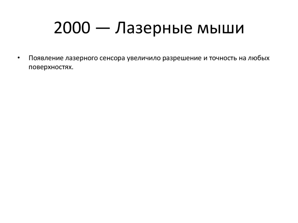 2000 — Лазерные мышиПоявление лазерного сенсора увеличило разрешение и точность на любых