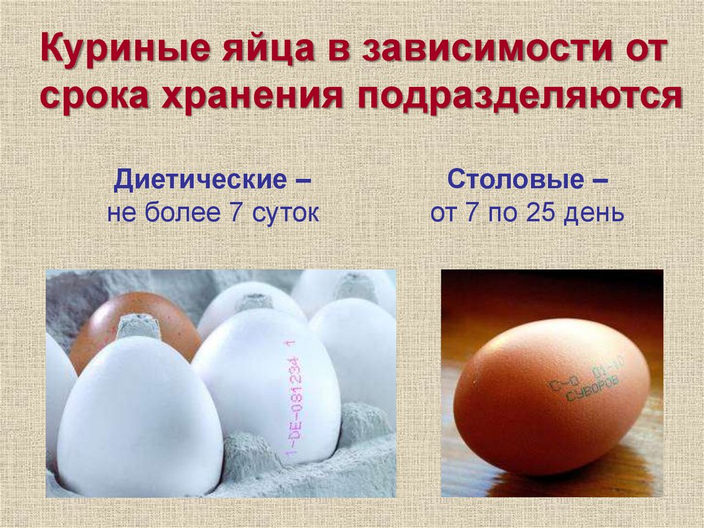 Куриные яйца в зависимости отсрока хранения подразделяются