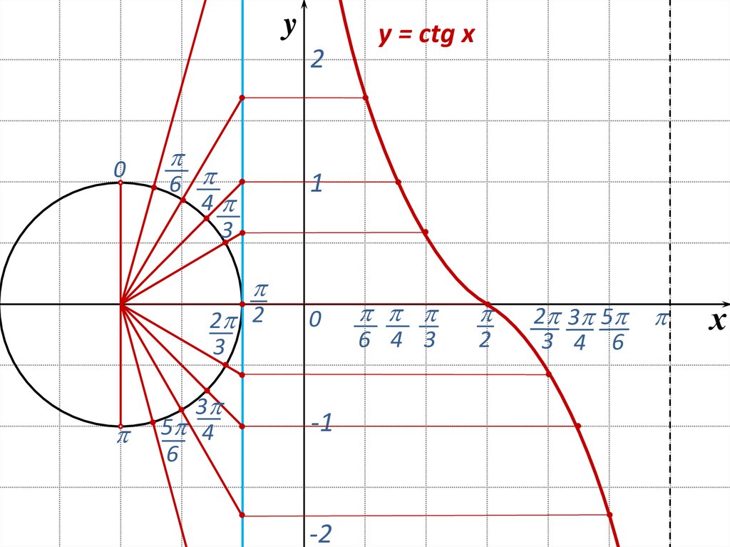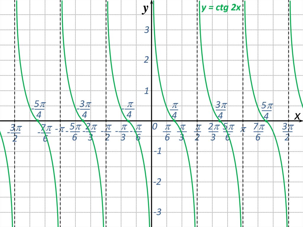 1. Область определения: x≠πn, n∈Z2. Множество значений: y∈(-∞;∞)