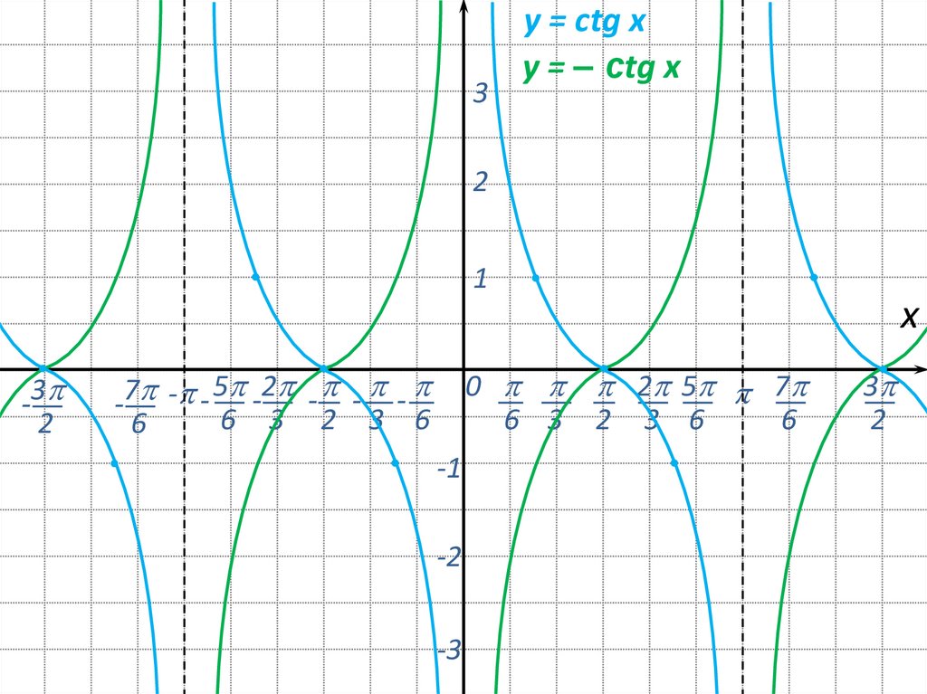 Пример: y = ctg |x|Строим график функции у = ctg x