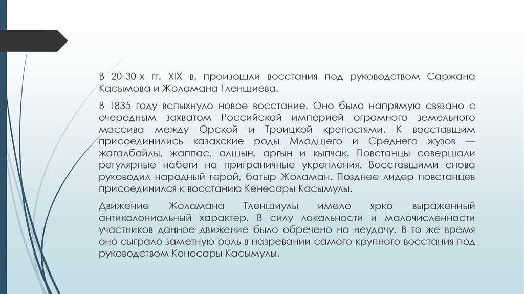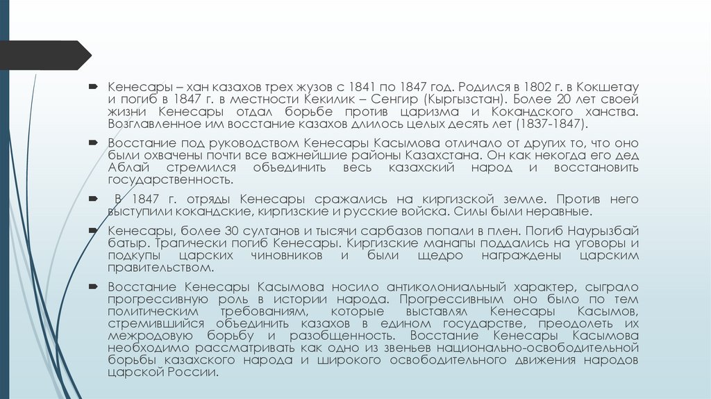 освободительного движения казахского народа, его национальноосвободительной борьбы.