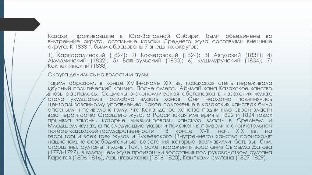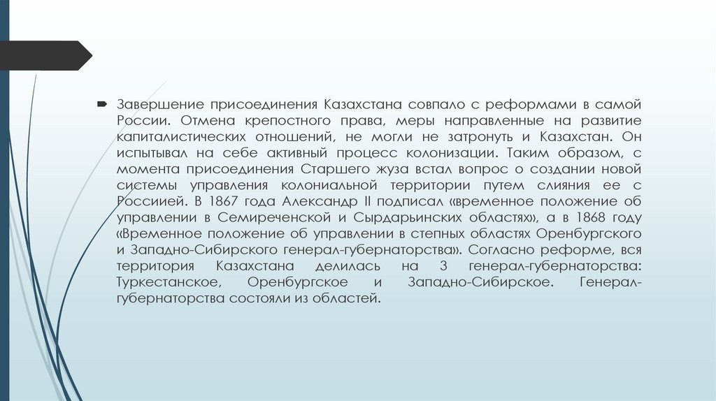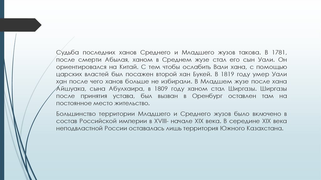 и ликвидацией ханской власти на территории Среднего и Младшего жузов,