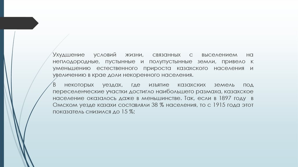 земель у казахов. Особенно большой поток переселенцев шел в