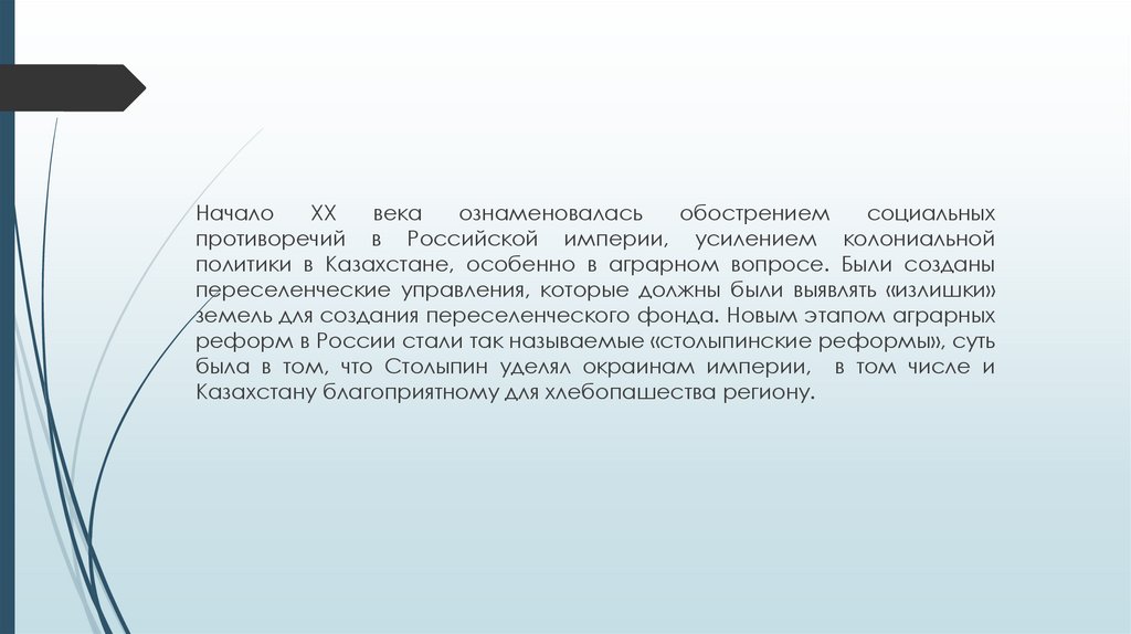 земель для создания переселенческого фонда. Новым этапом аграрных