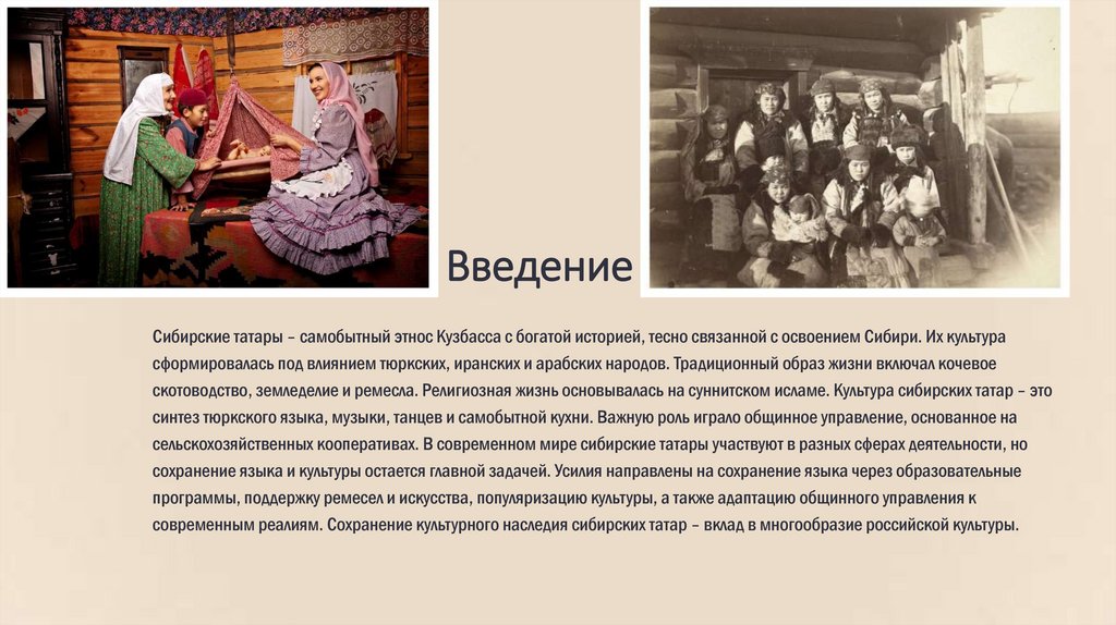 ВведениеСибирские татары – самобытный этнос Кузбасса с богатой историей, тесно связанной с освоением Сибири. Их культура