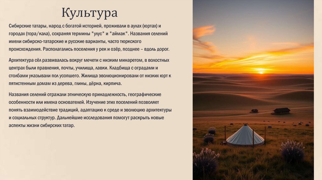 ВыводСибирские татары обладают богатым историко-культурным наследием,