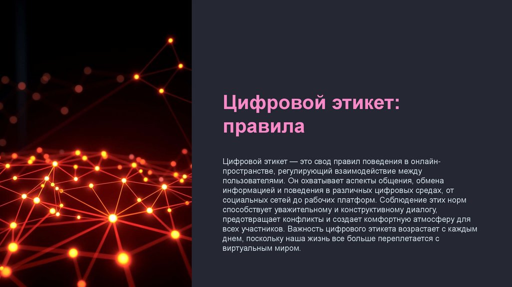 Цифровой этикет — это свод правил поведения в онлайнпространстве, регулирующий взаимодействие между