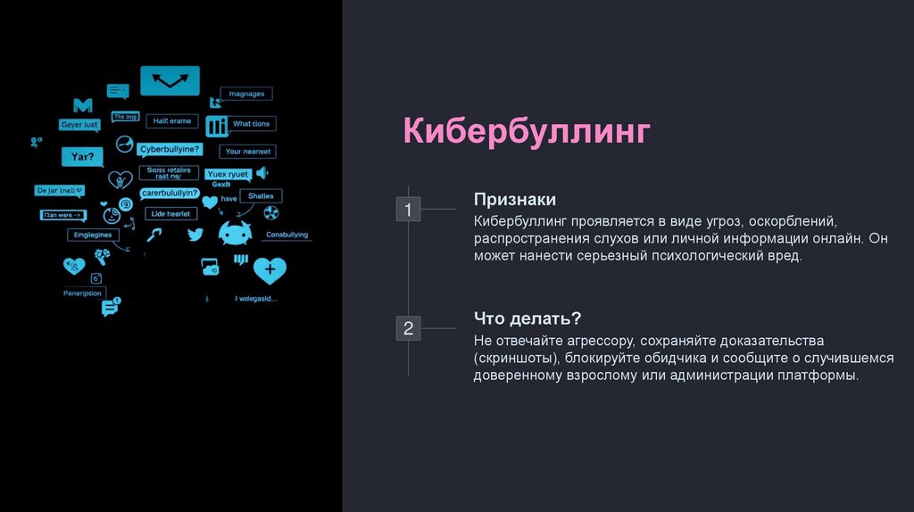 Кибербуллинг проявляется в виде угроз, оскорблений,