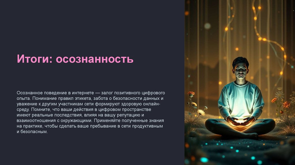 Итоги: осознанностьОсознанное поведение в интернете — залог позитивного цифрового