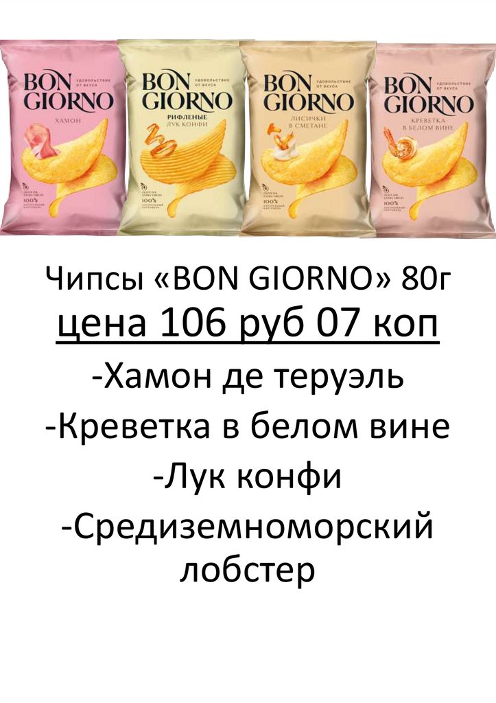 Чипсы «BON GIORNO» 80гцена 106 руб 07 коп