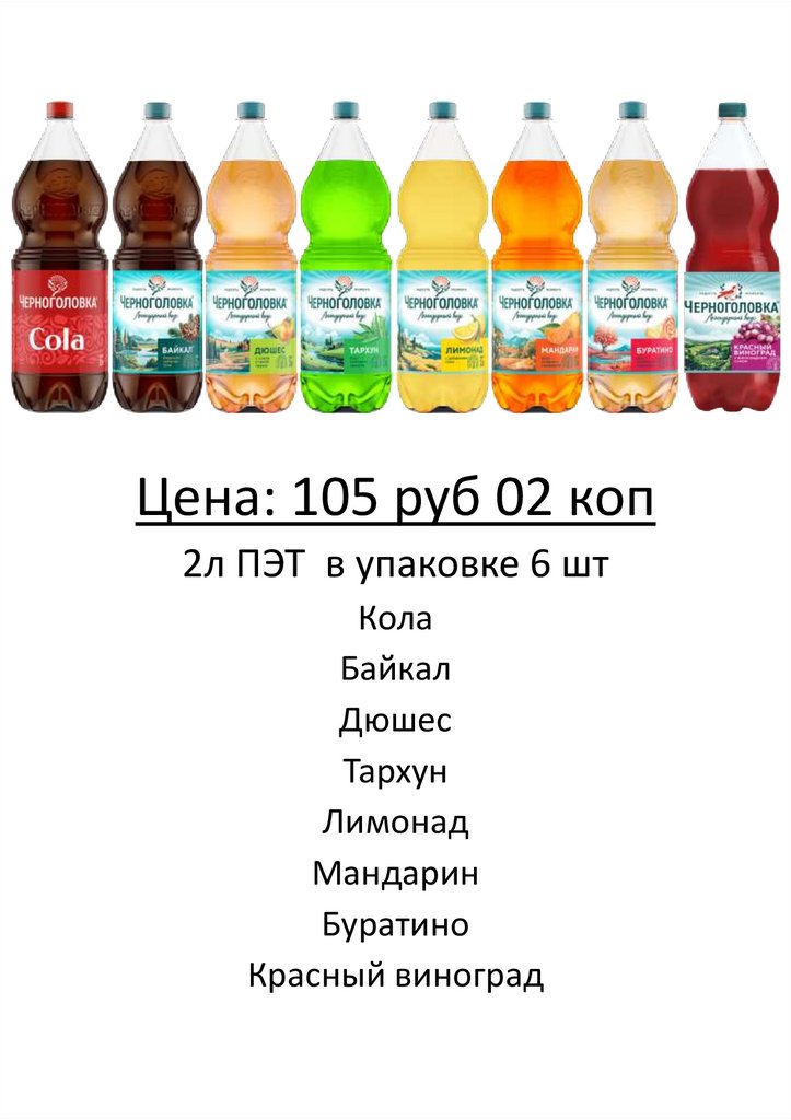21. Вода «Черноголовка» (газированная и негазированная) 1,5 л ПЭТ В упаковке 6 штук Цена 44 руб 50 коп 2,5 л ПЭТ В упаковке 4 штуки