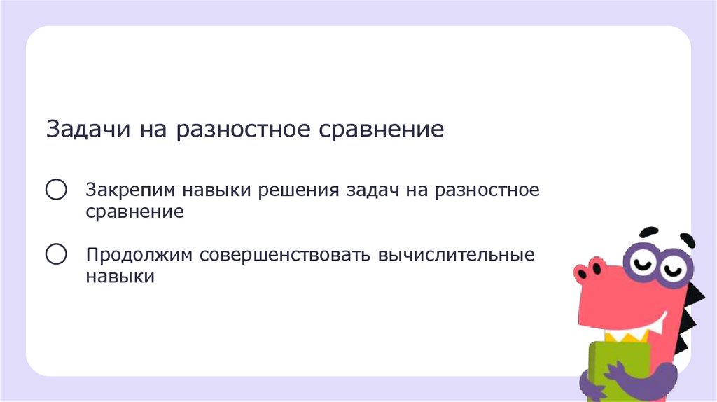 Задачи на разностное сравнениеЗакрепим навыки решения задач на разностное