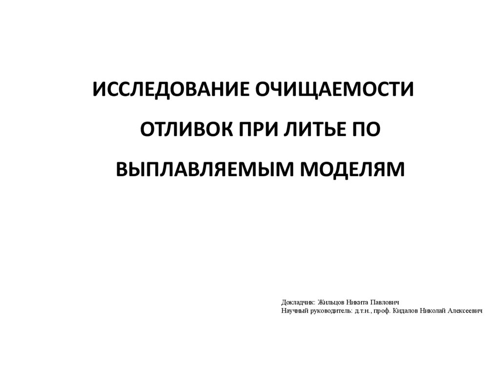 ИССЛЕДОВАНИЕ ОЧИЩАЕМОСТИОТЛИВОК ПРИ ЛИТЬЕ ПО