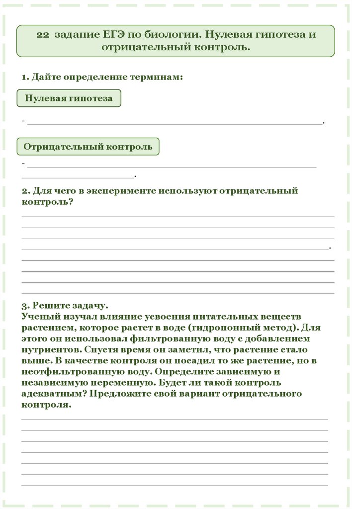 22 задание ЕГЭ по биологии. Нулевая гипотеза иотрицательный контроль.