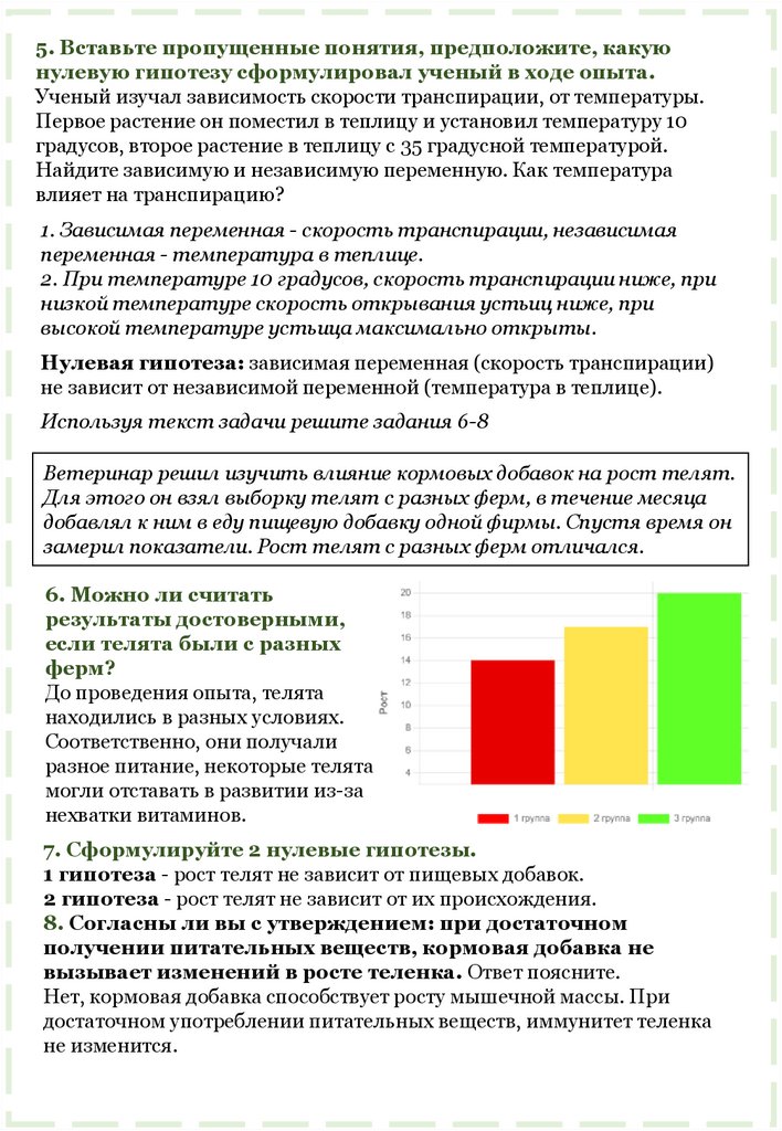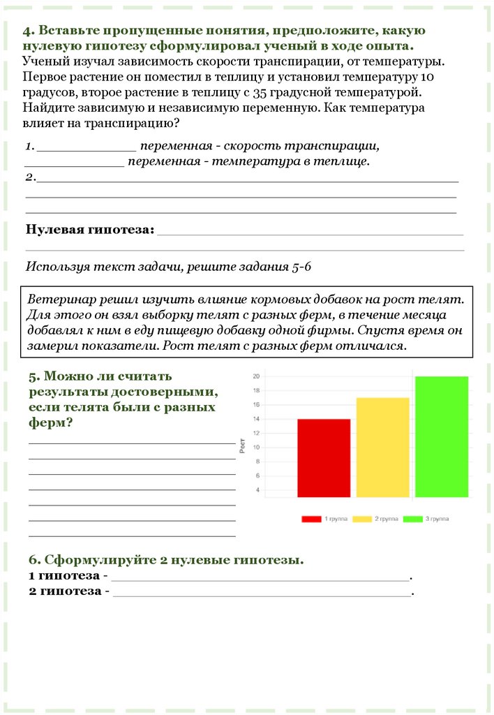 5. Вставьте пропущенные понятия, предположите, какуюнулевую гипотезу сформулировал ученый в ходе опыта.
