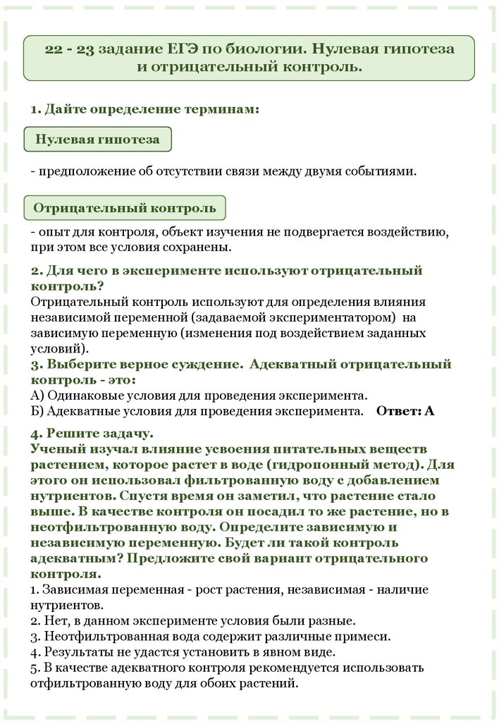 22 - 23 задание ЕГЭ по биологии. Нулевая гипотезаи отрицательный контроль.