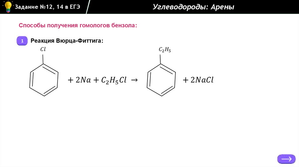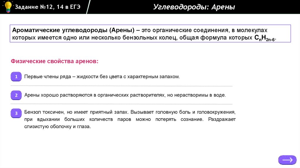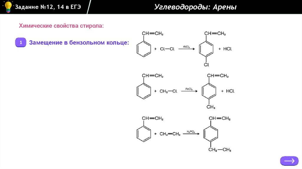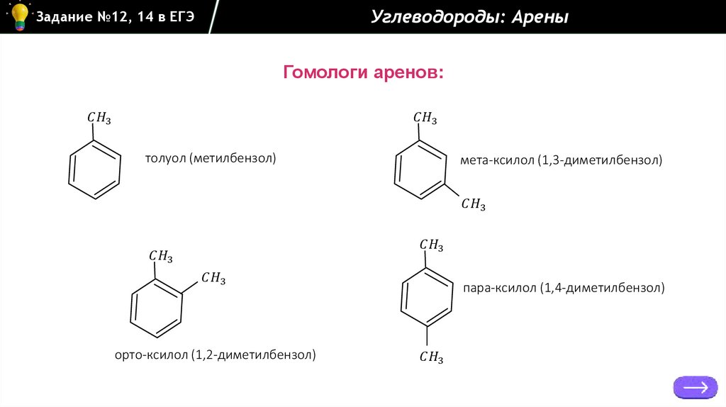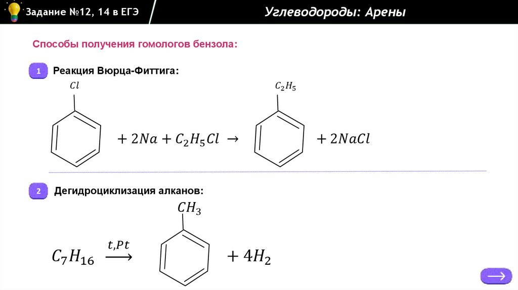 Задание №12, 14 в ЕГЭУглеводороды: Арены