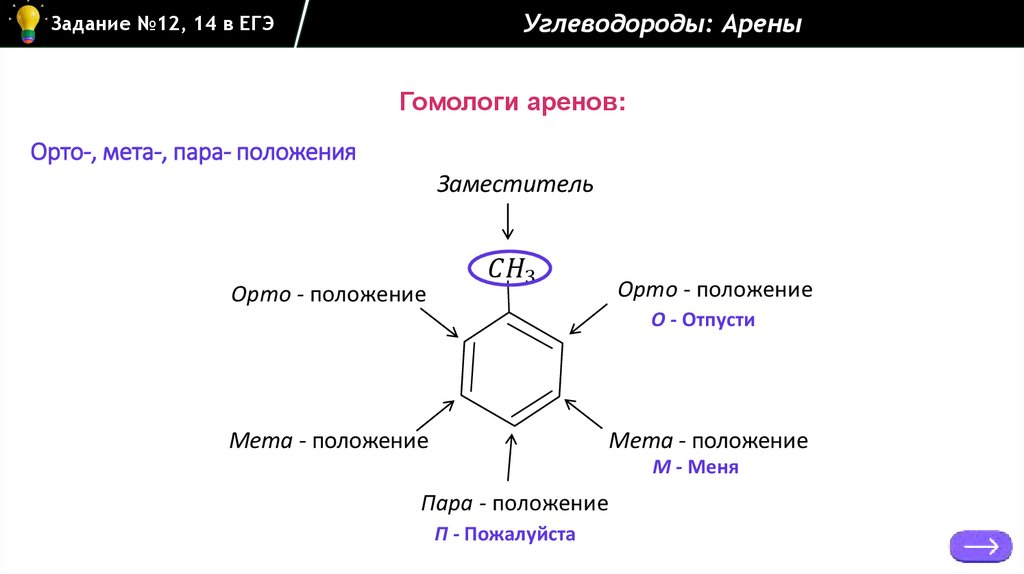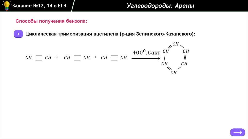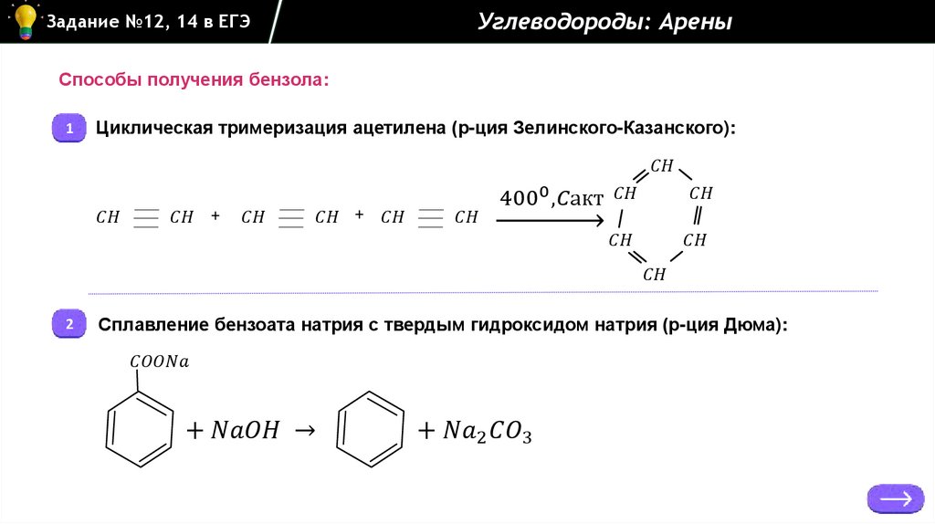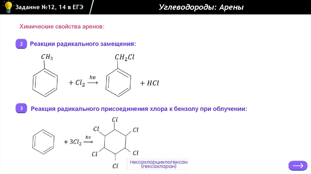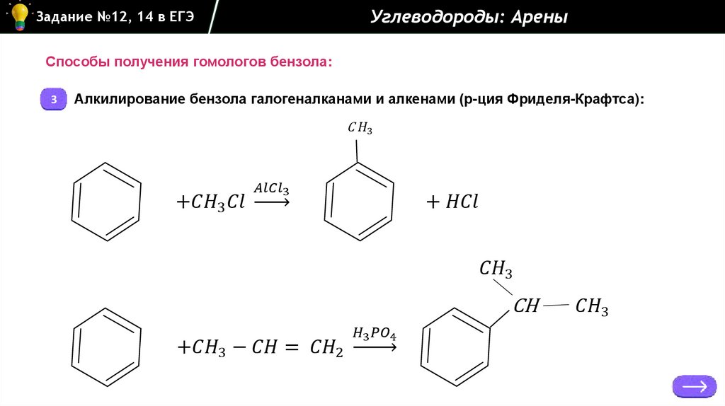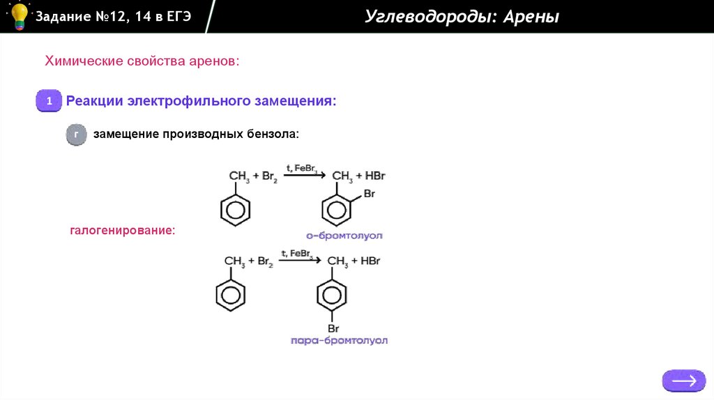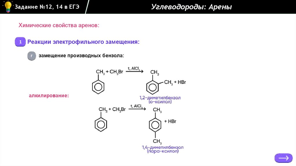 Углеводороды: АреныЗадание №12, 14 в ЕГЭ