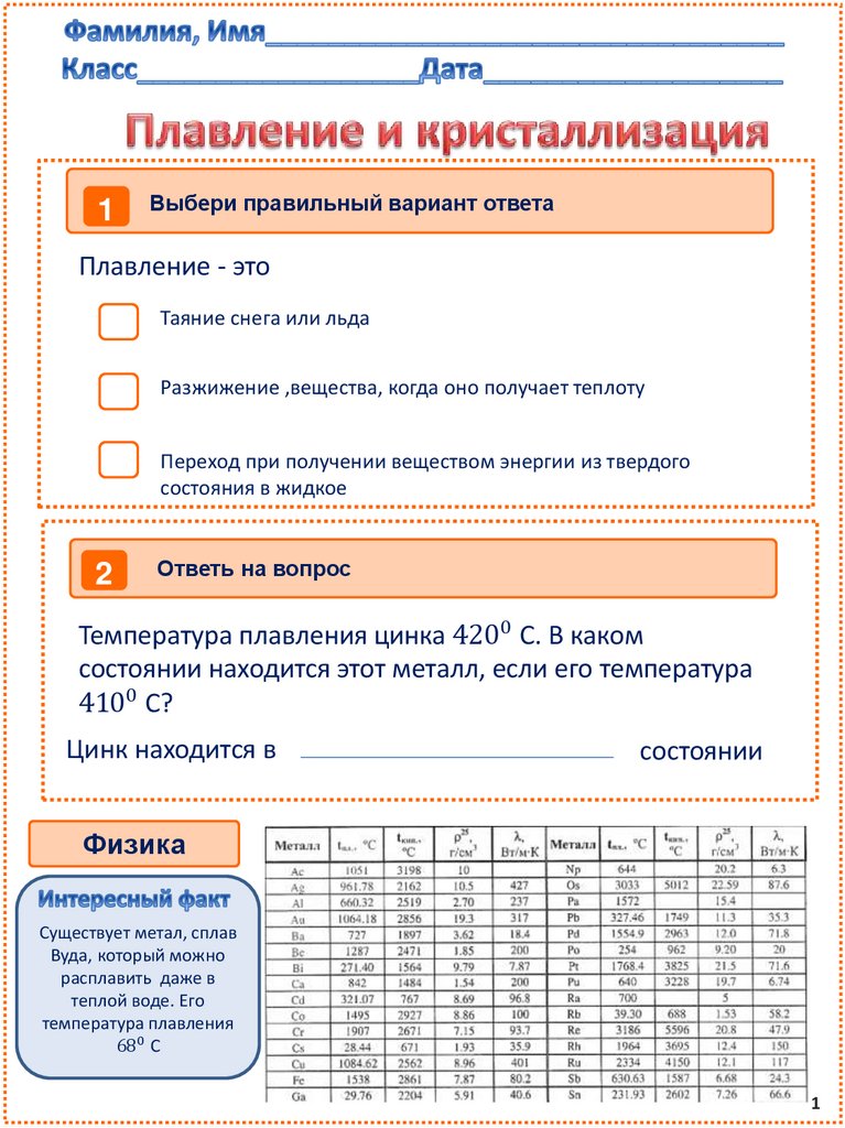 Температура плавления цинка 4200 С. В каком