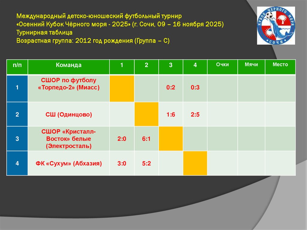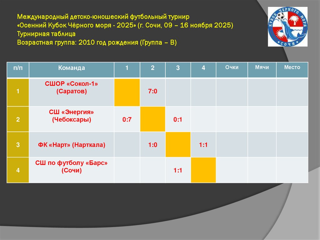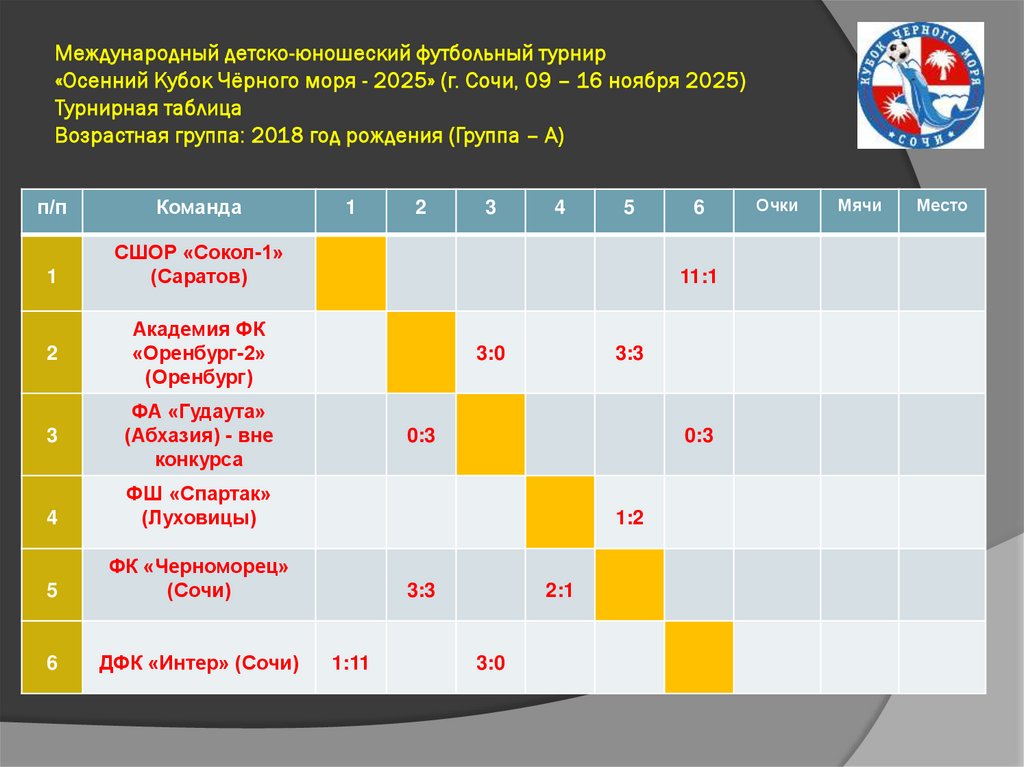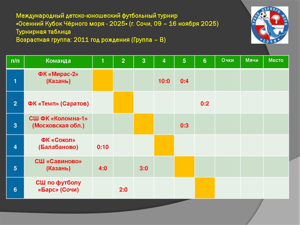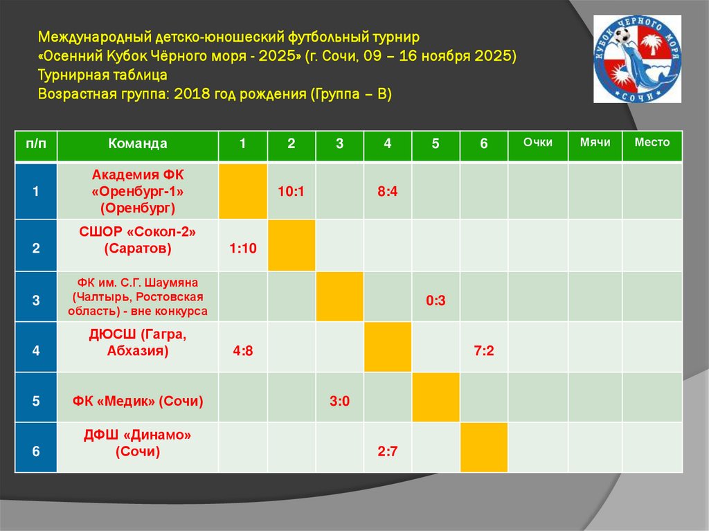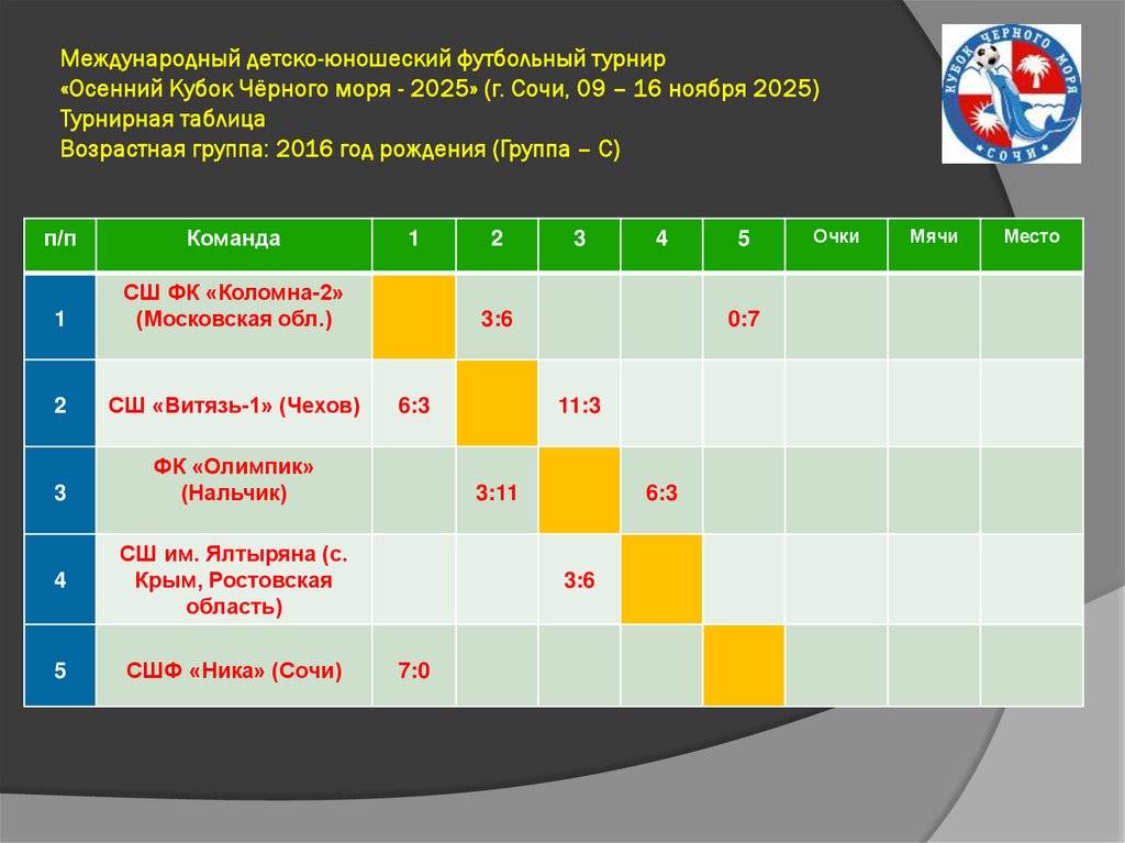 Международный детско-юношеский футбольный турнир«Осенний Кубок Чёрного моря - 2025» (г. Сочи, 09 – 16 ноября 2025)