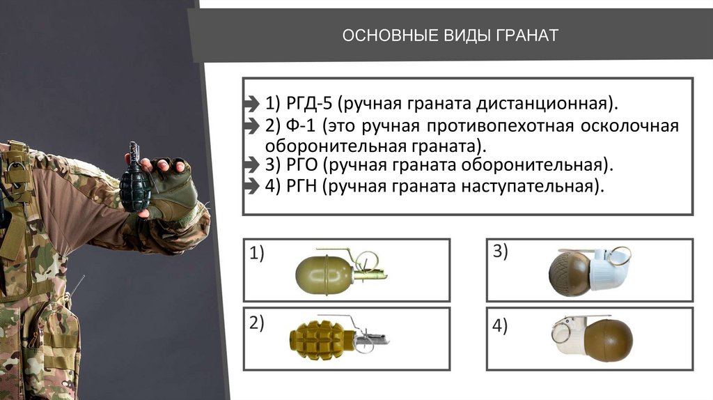 ОСНОВНЫЕ ВИДЫ ГРАНАТ1) РГД-5 (ручная граната дистанционная).