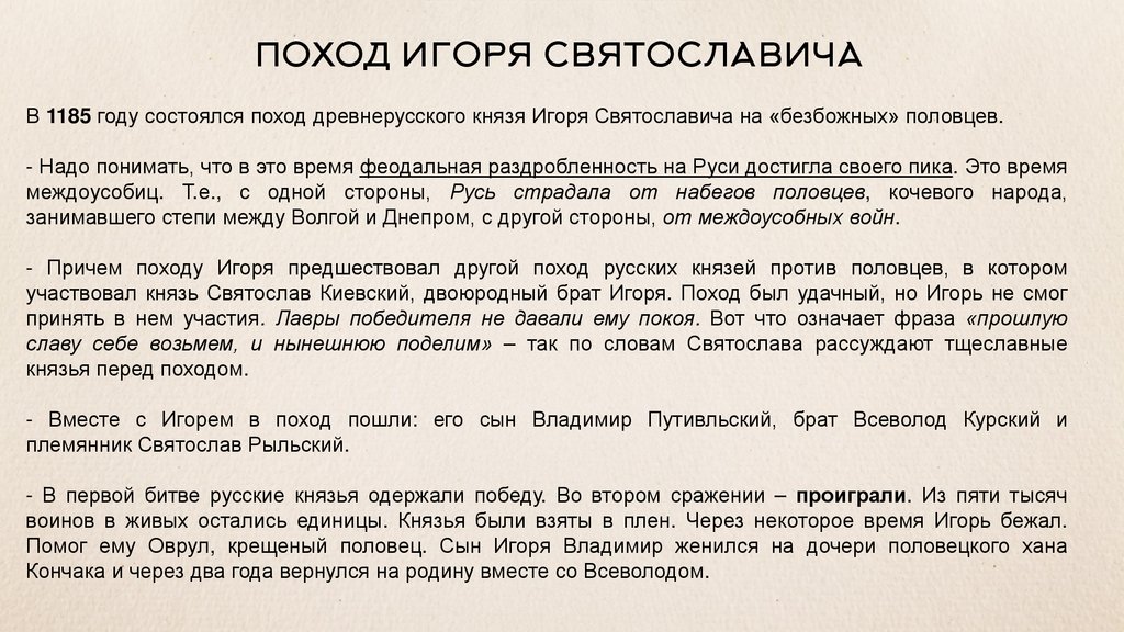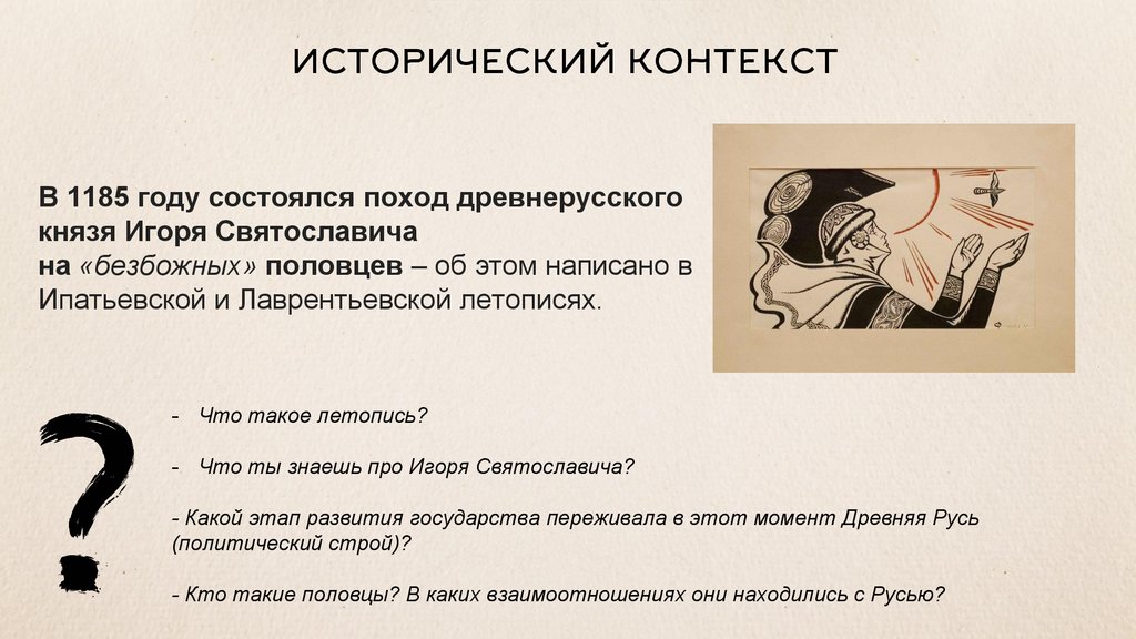 ИСТОРИЧЕСКИЙ КОНТЕКСТВ 1185 году состоялся поход древнерусского