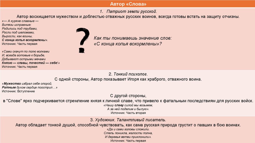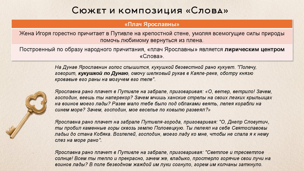 Сюжет и композиция «Слова»«Плач Ярославны»